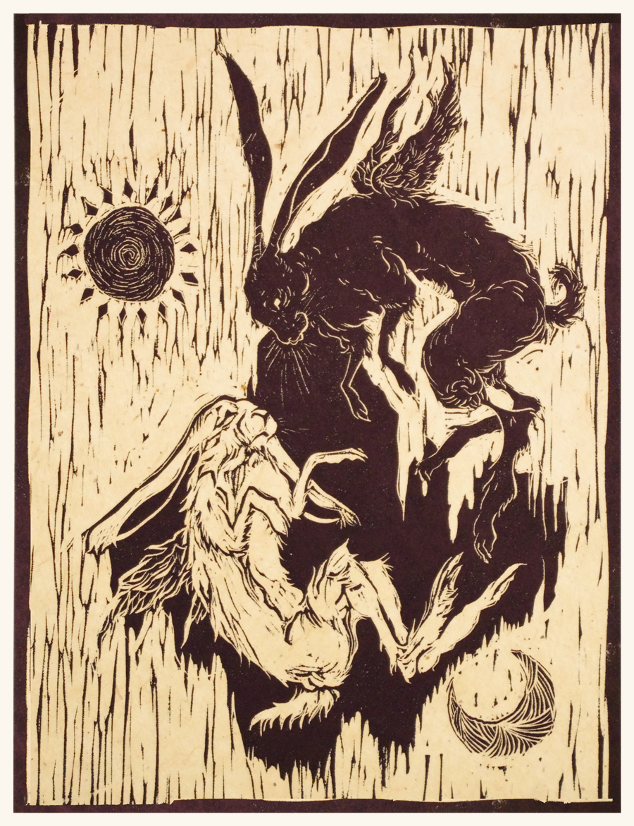 • Sun Hare & Moon Hare - Relief print. 2016