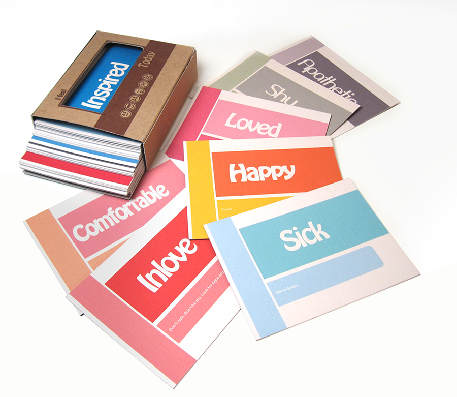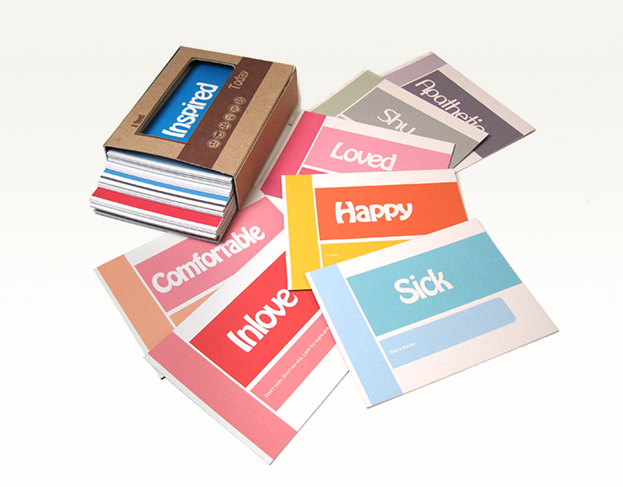 120 cards designed to help lead us through our every day life by prompting us to accept and understand our subtle inner thoughts, helping us express those thoughts and emotions to our loved ones at home or our colleagues at work. With this tabletop card case we are able to display and articulate our state of mind at any given time.