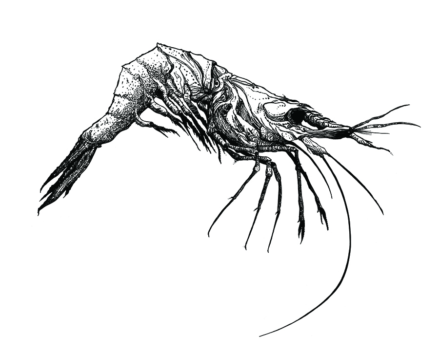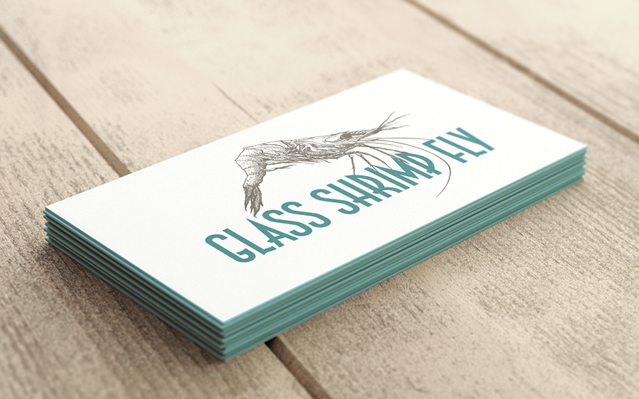 A logo design and packaging for a fly tying company. Client wanted an illustrated logo of a shrimp.
